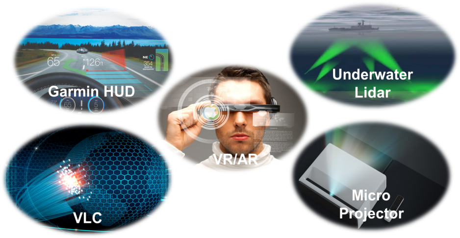 Fig.1 Micro-LED、LD在新型显示、通讯领域应用。图片来源:百度图片