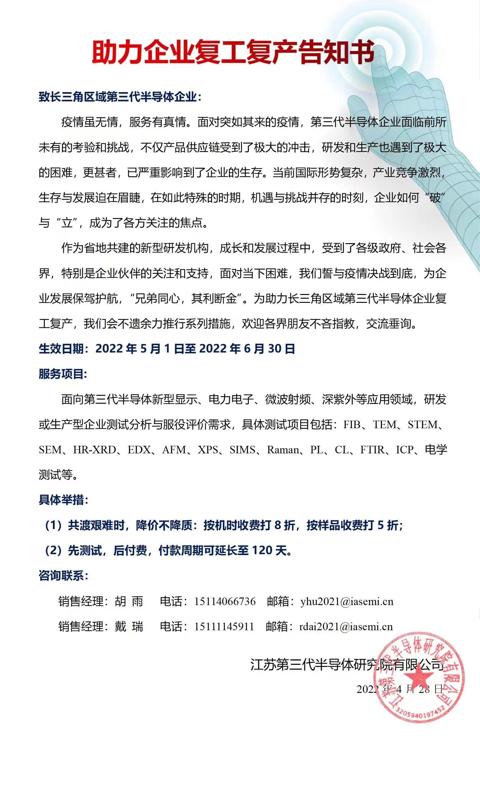 助力企业复工复产告知书